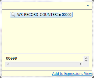 You can use the COBOL Source Information (CSI) functionality and its Quick Browse dialog to obtain information about your program when you are debugging it. This example shows details for data items starting WS-, such as the name, definition, and amount of times each item occurs in the program.