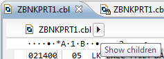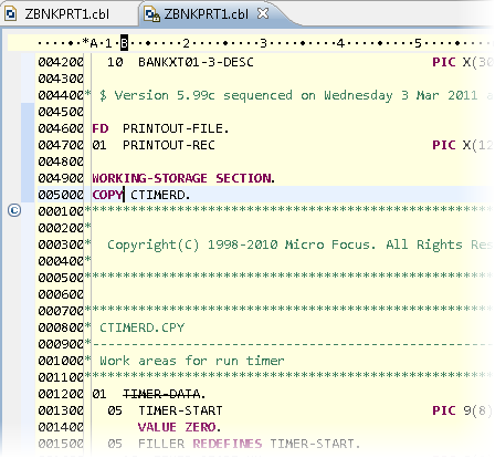 Click a copybook reference in the Copybook Dependency view to locate the associated COPY statement at the appropriate line in the source code.