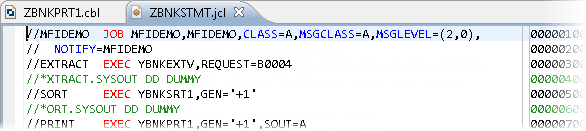You are going to explore some of the COBOL editing features using the ZBNKPRT1.cbl program which produces a report from a sequential data file.