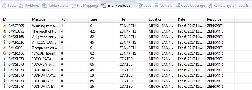 The code is compiled on the mainframe, using the mainframe compiler. If any syntax errors are detected, they are displayed
