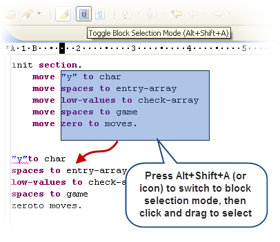 COBOL エディターは、次のように、コードの作成に役立つ機能を多数備えています。