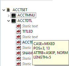 ツリー構造に、BMS マップセット、マップ、および属性とそれらのプロパティがツリー ノードとして表示されます。