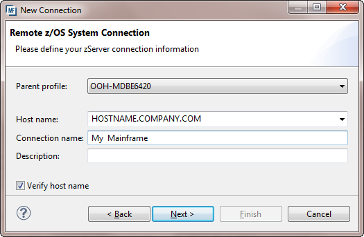 Create a remote system (mainframe) connection: