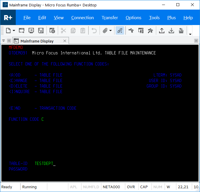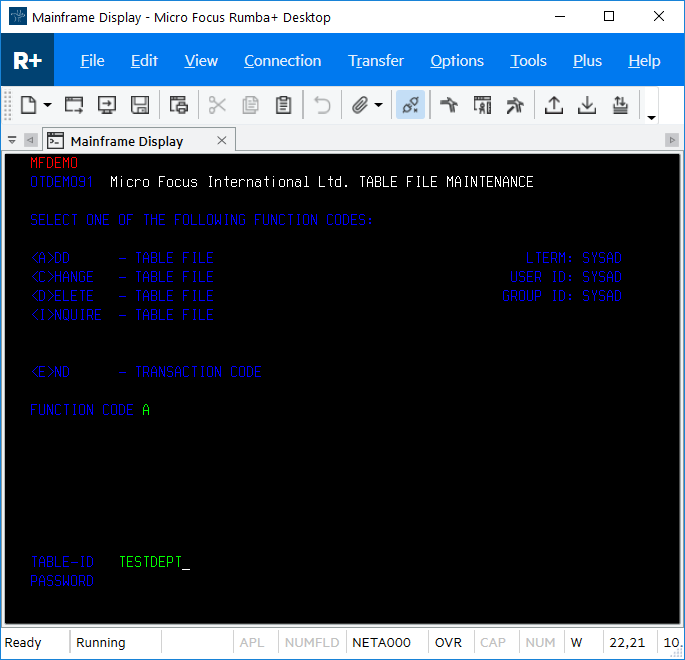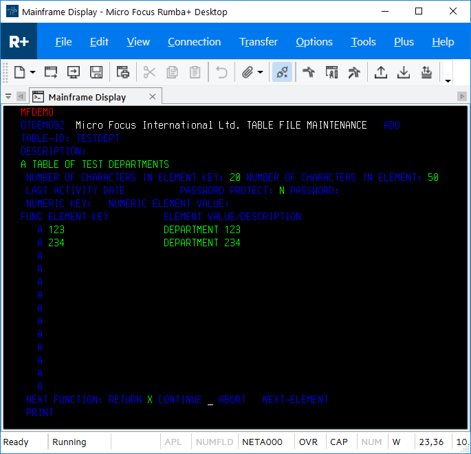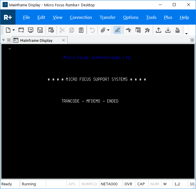 This action takes you to the TRANCODE - MFDEMO - ENDED screen.