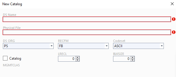 New) - add new catalog items. When you click this button, you need to provide the DS name and physical file path for the new