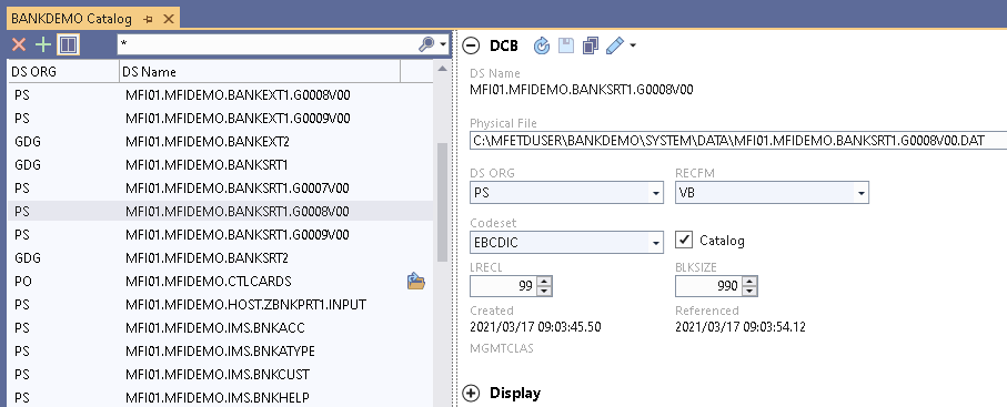 (Open With Data File Tools) - open the catalog entry in the Micro Focus Data File Tools utility, or click the downwards arrow and choose one of the