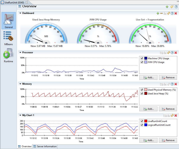 MBean は、ライブになっている RunUnit の数を視覚的に表示できる以下の 2 つの属性を提供します。