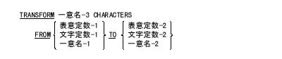 - 一意名-1または一意名-2が、一意名-3と同じ記憶領域を指していると、TRANSFORM処理の結果はどうなるかわからない。(データ部 - ファイルおよびデータ記述の章のREDEFINES(再定義)句節を参照。)