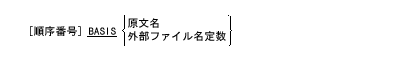 BASIS 文は、該当するプログラム (編集制御ファイルと COBOL 原始ファイル) を BASIS 機構の規則に従って、COBOL システムに投入することを示す。