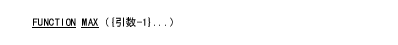 MAX 関数は、引数-1のうちで値が最大であるものの内容を返す。 この関数の型は引数によって決まる。具体的には下記のとおり。