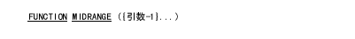 MIDRANGE 関数は、引数の最小値と最大値の算術平均値を返す。この関数の型は数字である。
