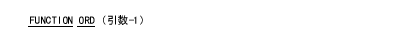 ORD 関数は、プログラムの文字の照合順序中で、引数-1が位置する順序を示す整数値を返す。順序番号の最小値は1である。この関数の型は整数である。