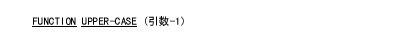 UPPER-CASE 関数は、引数-1の文字列中の小文字を対応する大文字に置き換えた同じ長さの文字列を返す。この関数の型は、引数の型によって決まる。具体的には下記のとおり。