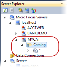 The filter appears in the Server Explorer; expand it to filter the catalog.