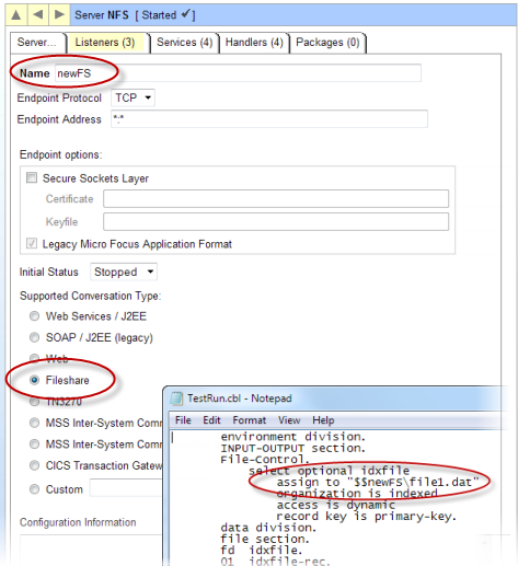 fsview<Enter> server set <listener-name><Enter> trace toggle<Enter>