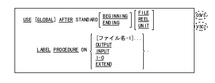 - 指定した手続きは、標準入出力誤り手順が終了した後で、または入出力文中にAT END指定をしなかった場合はAT END条件が検出された時点で、入出力システムによって実行される。