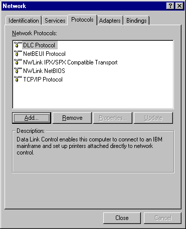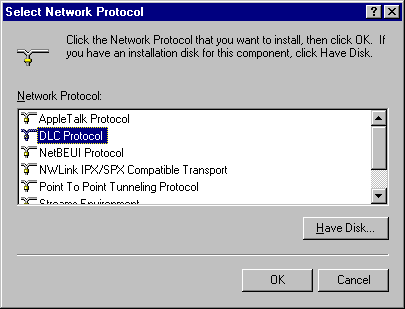 Select DLC protocol from the Network Protocol Window and click the OK button.