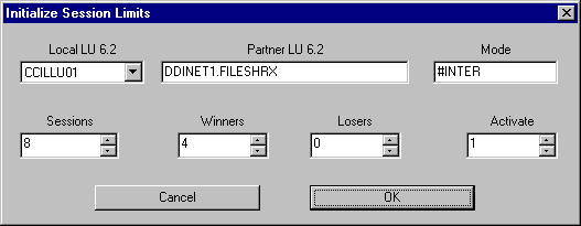 IMPORTANT NOTE: When a connection is established between a Local LU and a Remote LU the Mode characteristics are negotiated. This means that it is possible that the partner system (e.g. mainframe) will reduce the session limits to values which it can support. This may mean that fewer client sessions than expected will be supported. Hence it is important that the Mode characteristics, as defined for both the Local and Remote LUs, are compatible.