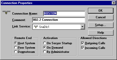 After successfully installing the SNA Server product, you can start to configure your APPC connection. You should have a VTAM definition of the connection you are attempting to configure available to you during the configuration.