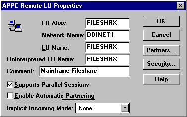3. In the LU 6.2 Partner LUs dialog box select the Add... button.