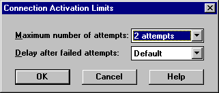 1. Set a value for the Maximum Number of attempts that SNA Server will make to establish the connection with the host system. The possible values range from 1 to Unlimited. We suggest a value of 2.