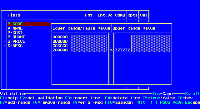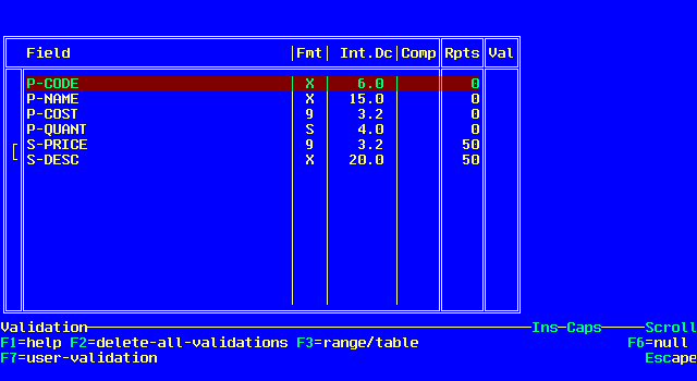 You will also see that if you press F10 when the current field is invalid, you cannot go to the other panel. There is a way to change this, which is described in a later tutorial.