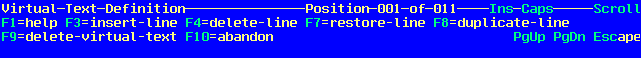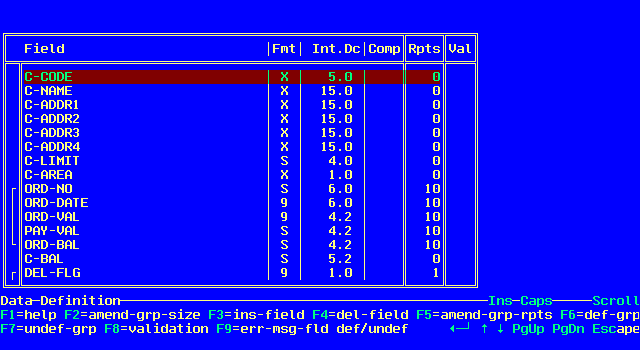 At run time, all data accepted into this group is accepted at the position of the selection bar. Therefore we need to define in the local dialog how to move the selection bar. An obvious choice is to allow the cursor down key to move the selection bar down and the cursor up key to move the selection bar up.