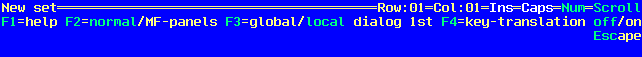 Pressing F2=normal-MF-panels from the Screenset Switches menu determines whether Dialog System uses its own internal coding (normal) or Micro Focus Panels to manipulate the panels in a screenset at run time. This is an attribute of the screenset and is saved when the screenset is saved. You can change this option at any time during the definition process.