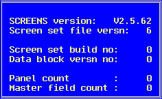 Pressing F7=set-dets from the Main Alt menu displays a panel, similar to that shown in Figure 3-6, which contains the current screenset's details. This is a display feature only.