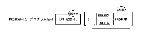 - プログラム名-1はこのプログラム定義によって宣言されるプログラムに名前を付けるものであり、このプログラムに関する実行用プログラム・コード・ファイルと関連する。定数-1を指定した場合、それは運用環境の外部のプログラム名となる。