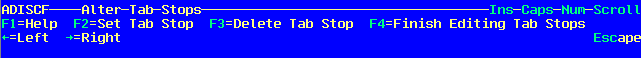 Pressing F4=Tab Stops from the Alter Configuration menu displays the Alter Tab Stops menu. This menu is shown in Figure 5-14 later in this chapter.