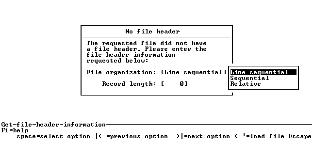 For relative files, the relative record numbers are displayed on the left-hand side of the screen. For other types of file, the numbers displayed on the left hand side of the screen are the byte offset at which the record starts in the file. If a file header exists, the offset includes 128 bytes of header information so the record might not start at byte 0.