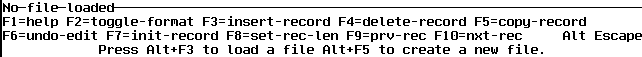 You load a file by pressing F3 (for an existing file) or F5 (for a new file) on the Alternate menu. Then more menu functions become available.