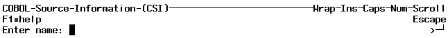 The Information Line is the first line displayed by the Editor at the bottom section of the screen. Although the contents of this line vary, it appears on every screen invoked by the Editor. An example is shown in Figure 7-1.