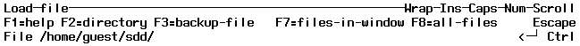 The file prompt appears below the Load-file menu. It displays the current path by default. You can change to another drive and directory by typing over the current one. You can use Backspace to delete the characters at the file prompt.