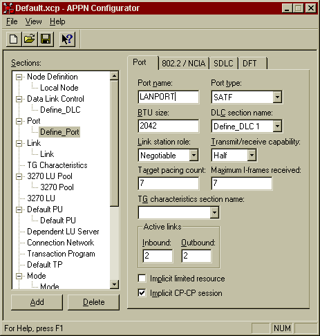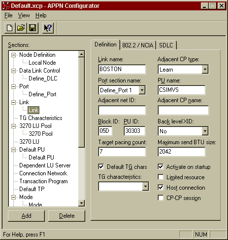 Select Partner LU (LU 6.2) from the Sections window and then click the