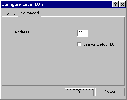 1. Select Local LU's by clicking in the Local LU's portion of the configuration window, then click the Add button. The Configure Local LU's window will appear.