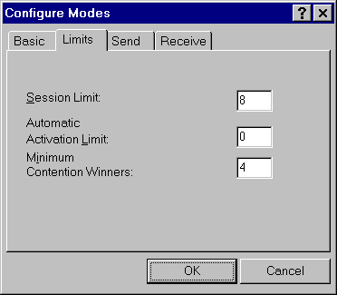 IMPORTANT NOTE: When a connection is established between a Local LU and a Remote LU the Mode characteristics are negotiated. This means that it is possible that the partner system (e.g. mainframe) will reduce the session limits to values which it can support. This may mean that fewer client sessions than expected will be supported. Hence it is important that the Mode characteristics, as defined for both the Local and Remote LUs, are compatible.