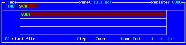 Pressing F2=start-file from the Trace menu starts to write trace information to a text output file named screenset-name.trc. The F2 key becomes F2=close-file. To stop writing trace information to the text output file, press F2 again. You can use this function to control what is written to the file by starting and stopping the file writes when you require. You can then examine the file in an editor and look at the path taken through the dialog.
