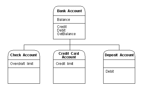 Inheritance enables you to reuse code by identifying common characteristics between classes. For example, in our banking example there are likely to be several types of account; for instance, savings accounts, high rate accounts and checking accounts. There are some features that all these accounts have in common; a balance attribute, methods Credit and GetBalance. But there are also differences; a savings account pays interest, while a checking account may allow overdrafts.