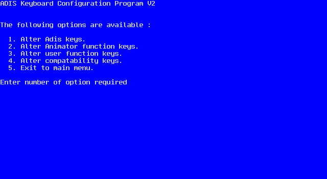 Normally, the default keys built into Adis should not need changing. However, you may need to change the keys used to emulate a particular dialect of COBOL.