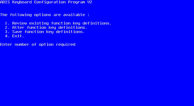 By default, the user function keys are initially disabled. In order to use these function keys during the execution of a program, you must first enable them by calling the x"AF" library routine or by altering the configuration using the Adis Configuration utility.