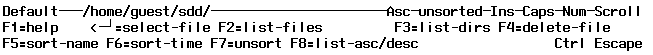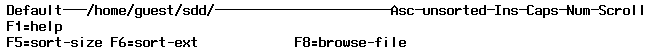 Pressing F5=sort-name sorts the listing in alphabetical order. The state of this option appears on the information line.