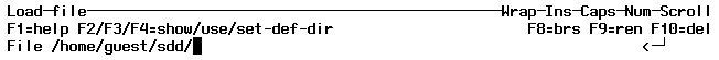 For example, the defaults for the Edit Load-file menu are .cbl, .CBL, .cpy, .CPY, .cob, .COB, and files with no extension. You can also include the wildcard characters "?" and "*", in which case a filename as well as an extension is used as one of the directory search criteria. If a filename is selected from the directory (by using the Enter function), that filename replaces the one currently displayed at the File prompt.