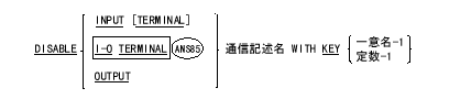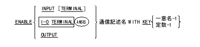 6. 定数-1または一意名-1のデータ項目の内容は、システムに組み込まれているパスワードと照合される。両者が一致した場合にだけ、ENABLE文は受け付けられる。両者が一致しないと、通信記述項の項目のうちのSTATUS KEYの値が更新される。