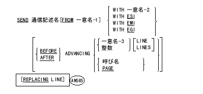 10. 受信側の通信装置が2つ以上の文字を重ね合わすことのできない種類のものである場合は、REPLACING指定の有無にかかわらず、SEND文によって送信された文字はすべて、同じ行に前に送信されている文字があれば、その行の左端から開始して上書きされる。