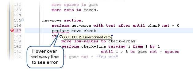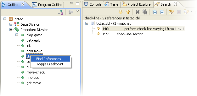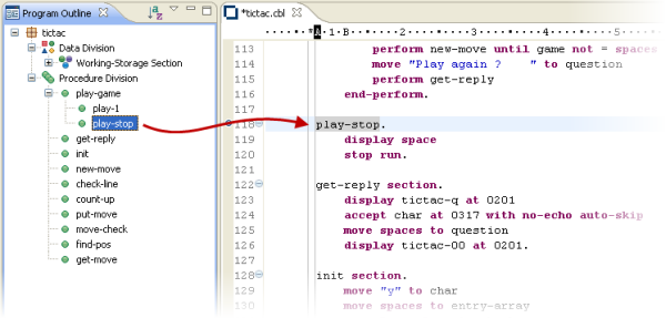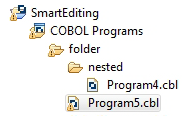 COBOL エディターは、次のように、コードの作成に役立つ機能を多数備えています。