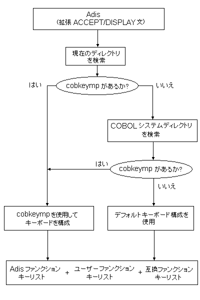 次の図は、実行時に使用される検索機構を示したもので、どのキーボード構成オプションを Adis で使用するかを決定します。