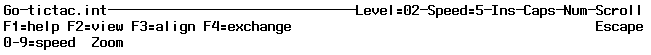 Go モードでのプログラムの実行速度は、0~9 のキーを押して調整できます。0 キーを押すと、実行速度は最も遅くなります。Animator メインメニューからも、Go 機能を選択する前に 0~9 のキーを押して実行速度を設定できます。現在の実行速度は情報行に表示されます。デフォルトの実行速度は 5 です。