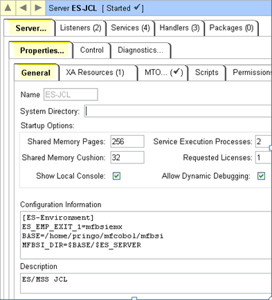 BASE=/home/pringo/mfcobol/mfbsi という行が [Configuration Information] フィールドに表示されている場合は、パスにサーバー名も含める必要があります。例えば、サーバー名が ES-JCL の場合、Windows パスは C:\MicroFocus\Netxproj\ES_JCL\MFBSI\ES-JCL となります。MFBSI_DIR によって指定されたフォルダーでは、スペースを含む長い名前がサポートされます。UNIX/Linux では、パスは /home/Pringo/mfcobol/mfbsi/ES-JCL です。